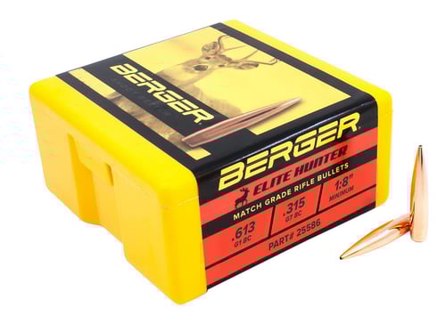 EOL Elite Hunters were developed through a partnership with Berger and Extreme Outer Limits TV. These bullets break the trend-line for today's heavy hunting bullets and are designed for extreme long range hunting situations, typically with custom rifle applications. Elite Hunter Bullets utilize Berger's industry-leading hybrid ogive, which blends tangent and secant designs to optimize efficiency, reduce wind-drift, and minimize sensitivity to seating depth. Elite Hunter Bullets are identical in construction, shape and performance to the Berger Hybrid Target series, except they utilize a thinner J4 Precision Jacket for rapid expansion on game animals. Elite Hunters are designed to penetrate 2-3 and then begin to expand and create a massive wound cavity up to 15. The hydrostatic shock causes most animals to drop immediately.